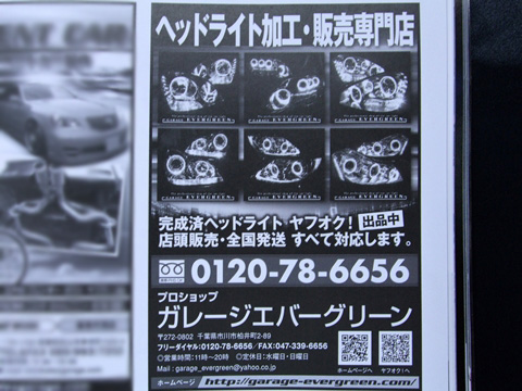 ■『VIP STYLE』平成25年12月号(交通タイムス社)に、ヘッドライト加工・販売専門店として、ガレージエバーグリーンの広告記事が掲載されました。